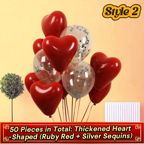 2.Extra-Thick Ruby Red Heart-Shaped Balloons with Silver Sequins – 50-Piece Set