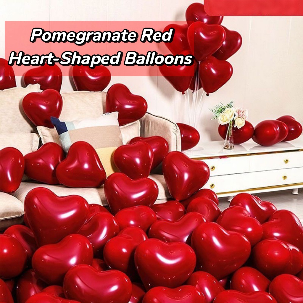 3.Extra-Thick Ruby Red Heart-Shaped Balloons with Macaron Heart Accents – 50-Piece Set