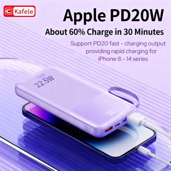 Be the first to review “Cafele 20000mAh Mini Power Bank – 22.5W Super Fast Charging, Built-in Cable” Cancel reply