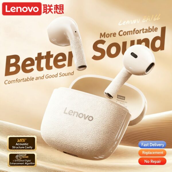 Lenovo IdeaPods EA166 2025 New Model – True Wireless Semi-In-Ear Bluetooth Headphones with High-Fidelity Sound, Extended Battery Life, Ultra-Compact Design (Unisex)