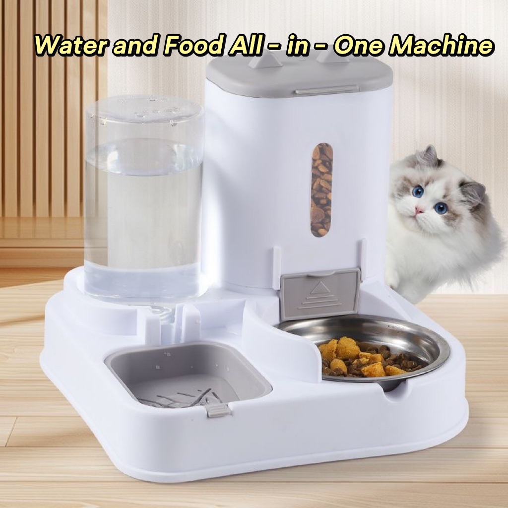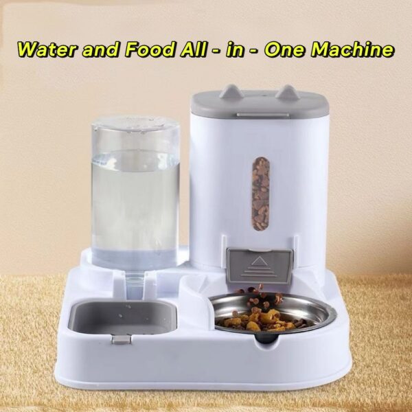 Premium Gray 2-in-1 Automatic Feeder & Water Dispenser (3-5 Day Capacity) with Stainless Steel Bowls